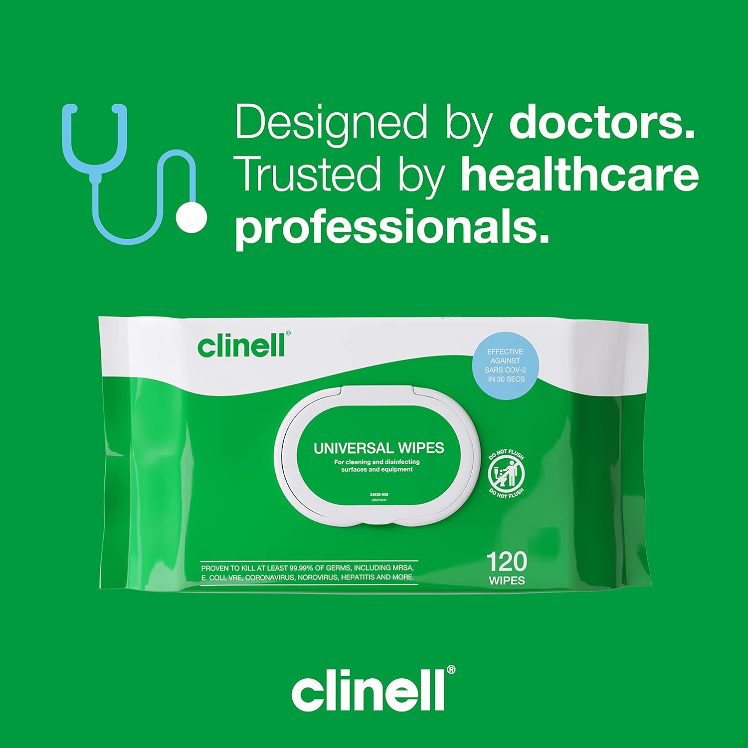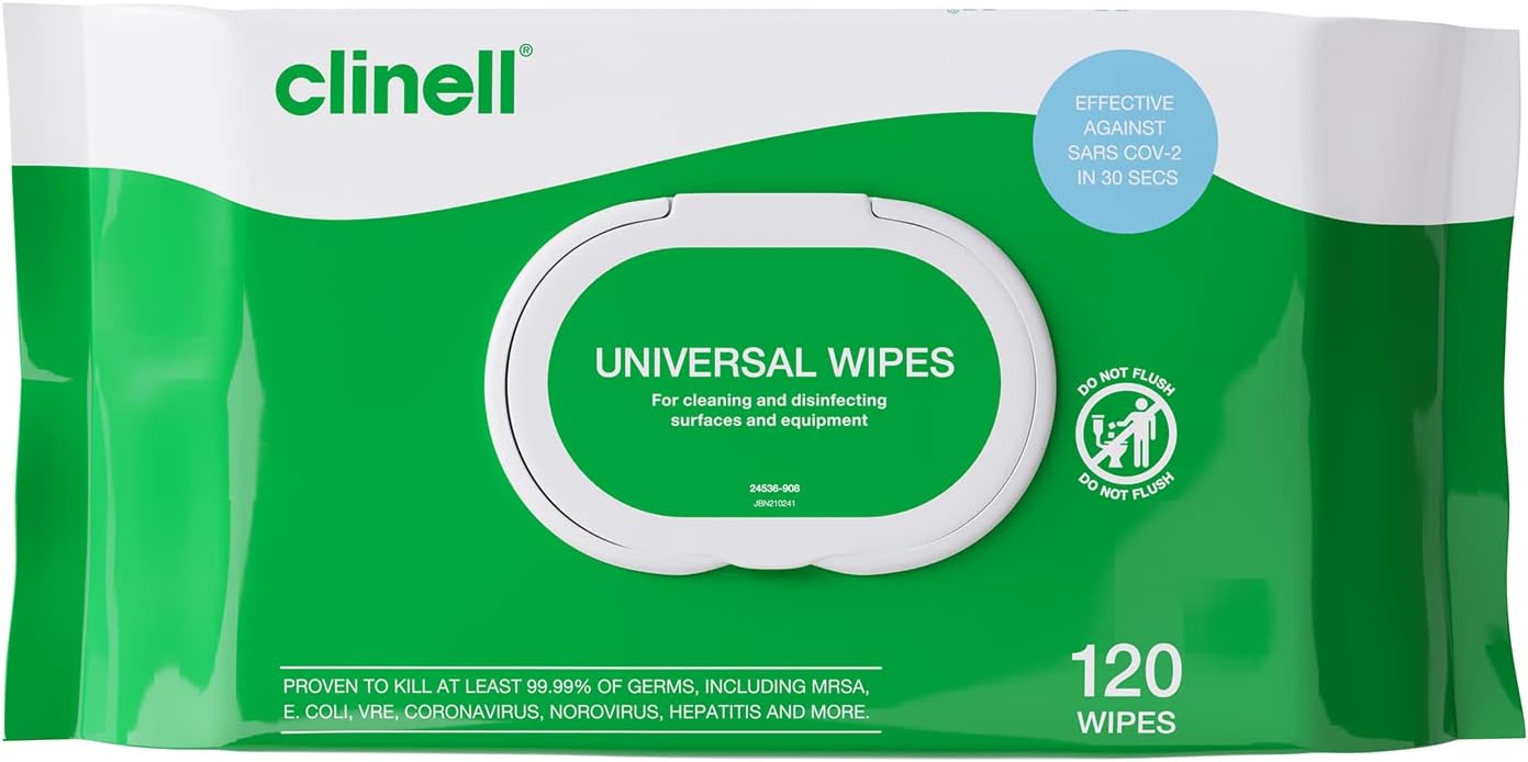 CLINELL UNIVERSAL SANITISING WIPES – 120 WIPES PER PACK