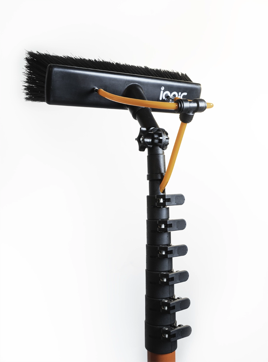 Therefore just like the mythical Greek serpent Ionic’s new Hydra pole is available with several familiar head options, including the Hydra Grafter Head. This Hydra Grafter Head is suited mainly for residential cleaning, it comes as standard with a non-curling monofilament nylon bristle brush and adjustable angle crank.