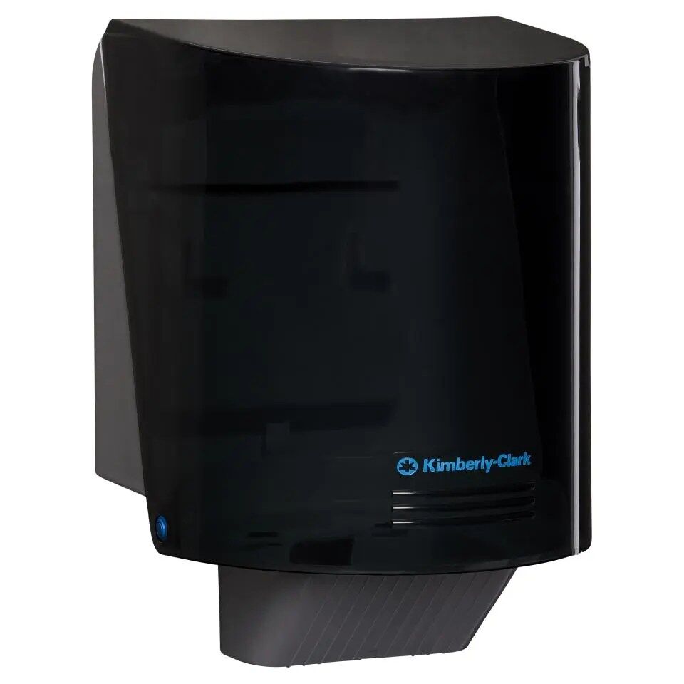 Kimberly Clark Centrefeed roll dispenser that improve hygiene, control usage, and help reduce costs. Available as: lockable (push button or key) quick-fill dispenser that has a smooth Grey water-resistant finish (which complies with food safety standards). Window to check product availability.