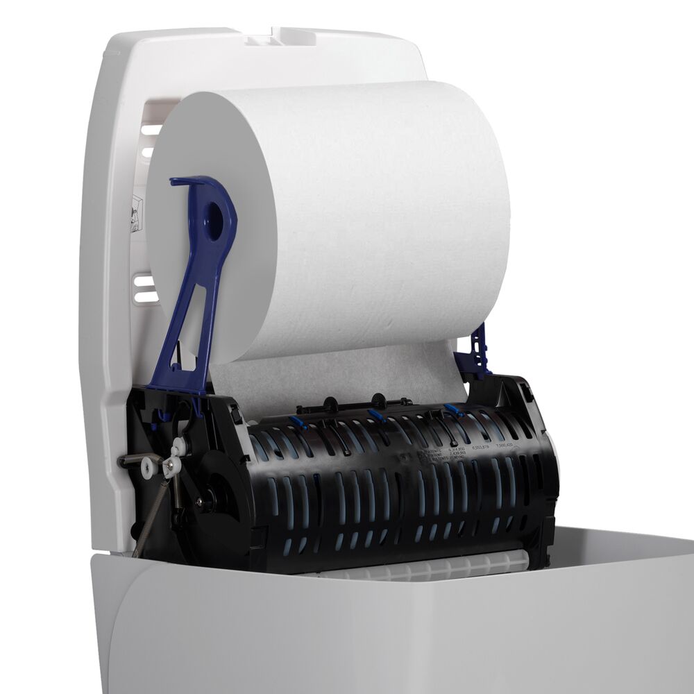 Dispenses rolled towels without the need to touch the paper towel dispenser, helping to reduce contamination and the spread of germs