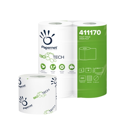 Bio Tech toilet tissue, thanks to its Biologic Active Tissue Paper (BATP), effectively and naturally combats pathogenic bacteria, aiding in keeping pipes, drainage systems, waste waters, and septic tanks clean. Its characteristics make it ideal for high-footfall locations, reducing the risk of clogs and minimizing costs related to extraordinary maintenance.