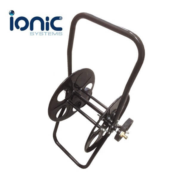 Black Powder-Coated Steel Hose Reel. Holds 50m of 1/2″ (13mm) Hose or 100m or 3/8″ (8mm) or other ‘minibore’ hose.